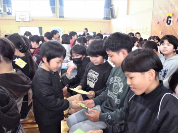 ペアの6年生へプレゼントを渡します
