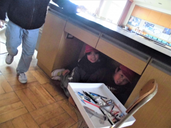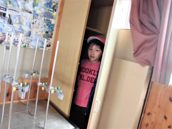 思い思いの場所に隠れる子供たち
