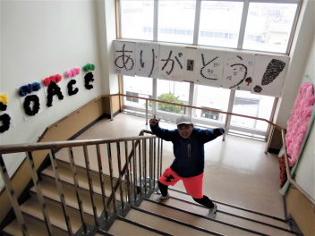 校舎に戻ると、朝から元気いっぱいの1年生を発見