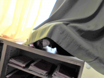 カーテンの後ろや教卓の下、掃除用具入れなど…
