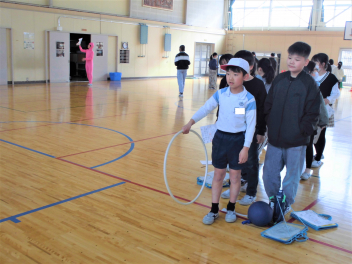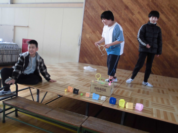 お化け屋敷を体験した後は、射的・輪投げ会場の体育館へ
