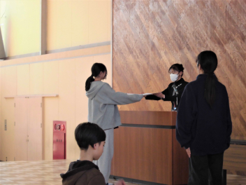 地域の方や先生方の方を向いて感謝の気持ちを伝えます。