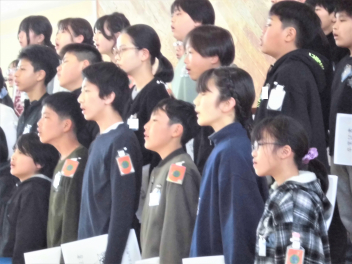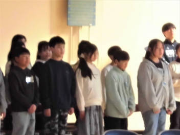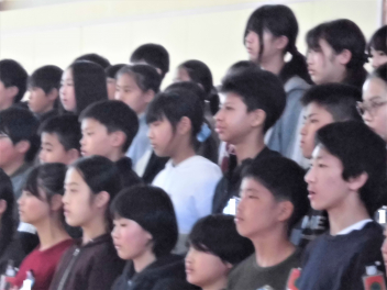 5年生・職員も加わった校歌の歌声が体育館中に響きます。