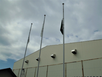 何度も挑戦して、ついに凧が揚がりました!!ラッパ隊も見事な演奏を披露してくれました!!