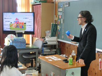 今日の総合の時間は「未来授業」を行いました。未来授業とは地域の大人が積極的に関わり、自分の経験や想いを伝えながら未来のことを考えるきっかけをつくる授業です。
