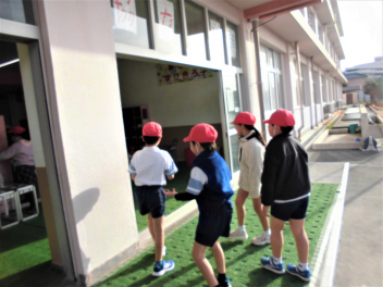 校舎に戻ると、朝から元気いっぱいの1年生を発見
