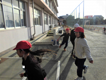 朝の支度を済ませた後に運動場で元気いっぱい体を動かしていました。