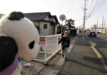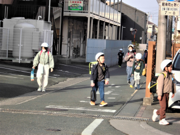 正門近くの信号機にも登校してくる子供たちが続々と登場