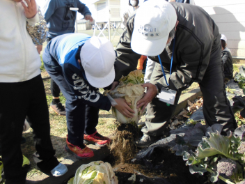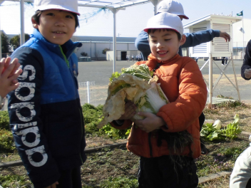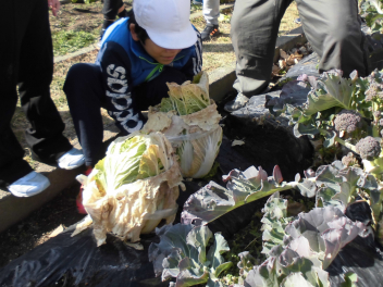収穫した白菜を、大切そうに抱きかかえていたり、うれしそうににこにこしていたりする姿が微笑ましかったです