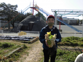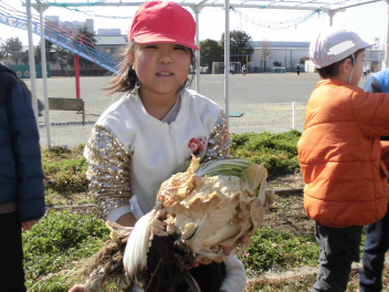 次は、白菜です。一人ではなかなか抜けませんでしたが、先生に手伝ってもらって抜くことができました!