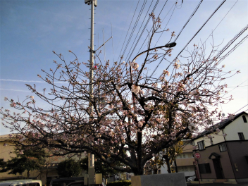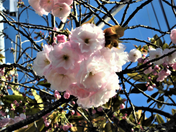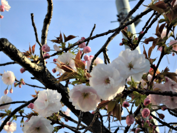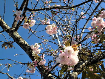 正門のサトザクラの花が…