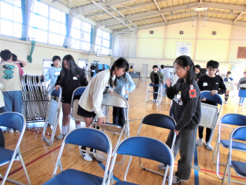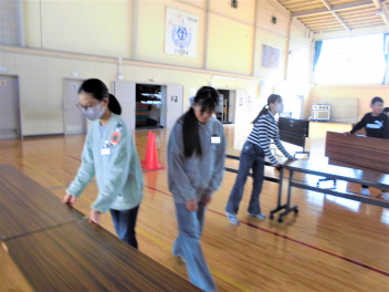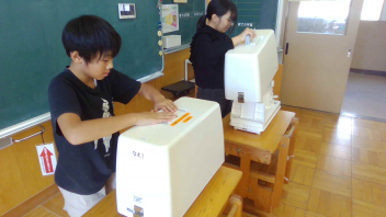 11月15日に入野中学校で行われる、火伏の丘楽市に向けて、布製品を製作しています。