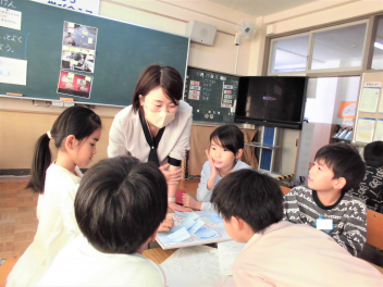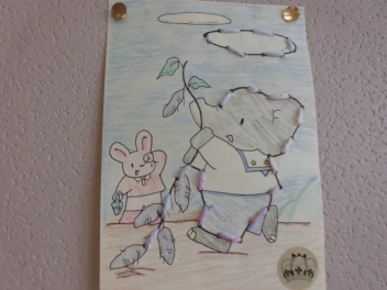 あるクラスでは、穴を開けた紙に、毛糸を通してイラストの輪郭を縫っていく、ぬいさしをしています。