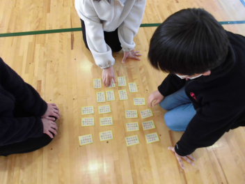 各クラスから集まった3人で札を並べ、いよいよ大会スタートです