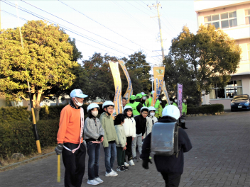 地域や保護者の方々の温かい声掛けに嬉しそうに挨拶の声を返す姿が印象的な朝でした