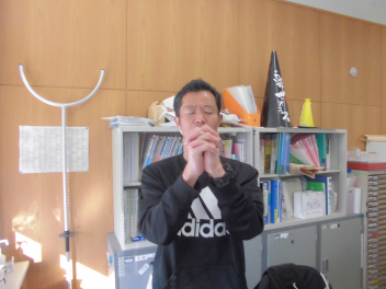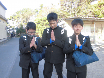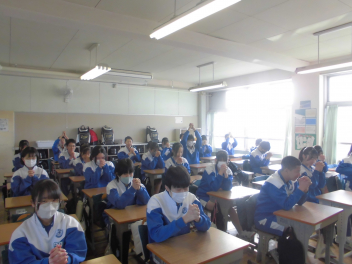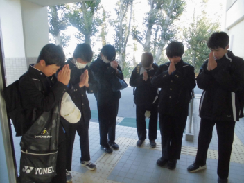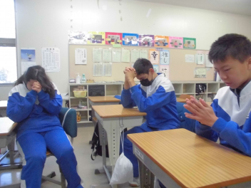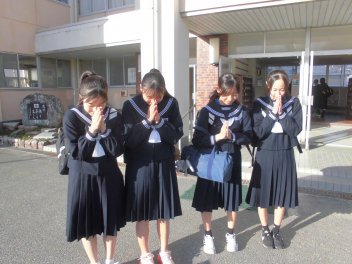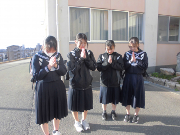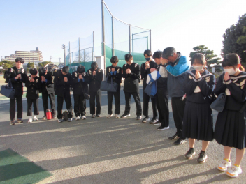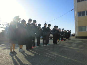 在校生 職員 みんなで念を送る祈りをfrown