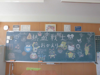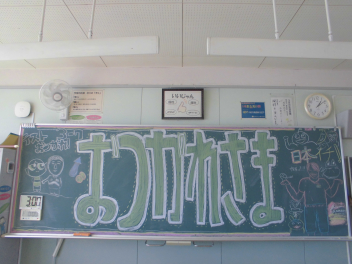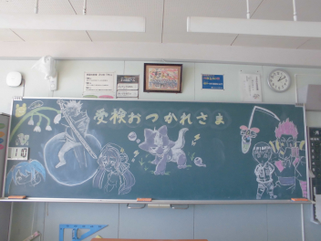 黒板に…