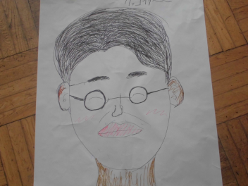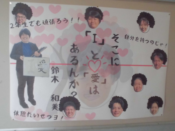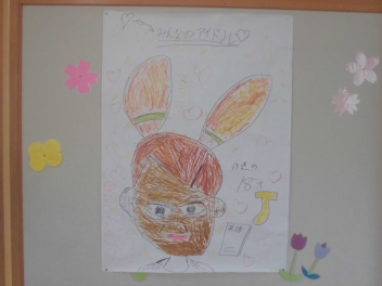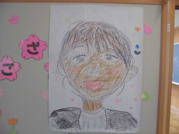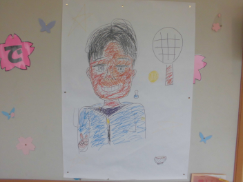 先日の「担任似顔絵コンテスト」で完成した似顔絵がfrown