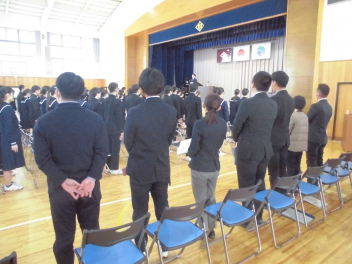 在校生 職員 みんなで念を送る祈りをfrown
