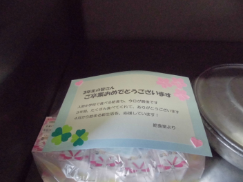「今まで、私たちの栄養を考え、美味しい給食をつくっていただき、ありがとうございました!」