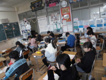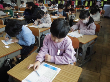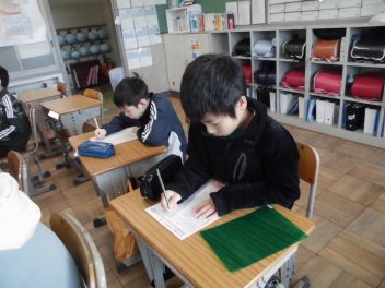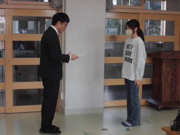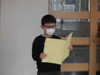 (↓) 2年生代表 ※全校での参加は叶わなかったものの、19日に教室で行った臨時終業式で発表してくれました。