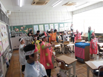 一つ目は、光のシンフォニーです。4年生のマツケンサンバではダンス隊がありました。僕は、ダンス隊が楽しそうだと思って、立候補しました。本番までにできるように動きを確認したり、大きな声で踊れるように毎日練習したりしました。本番では、かっこよくステージを降りて、大きな声で楽しく踊ることができました。4年生のステージは、みんなで力を合わせて、楽しく、元気よく、4年生らしく、シンフォニーを盛り上げることができました。