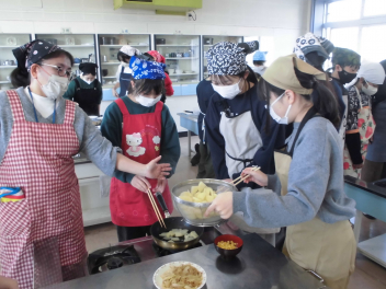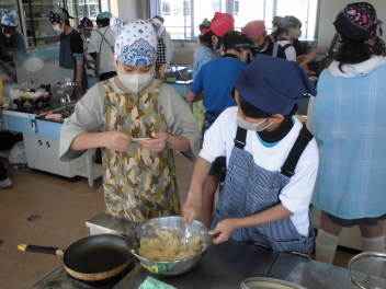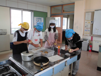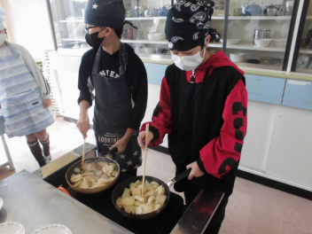 まずは6年生。家庭科にて「ジャガイモを使った料理」をつくりました。