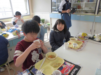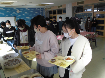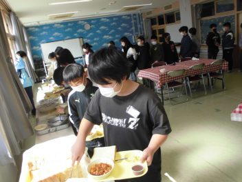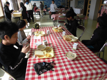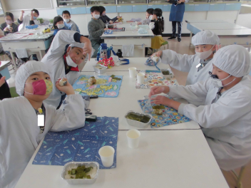 さて、本日のブログは「6年生 ランチルーム給食」の様子を紹介します(昨日からお食事ネタが続きました…angel)。「卒業までにやりたいこと」の1つに「ランチルームで給食を!」というものがあったため、今回実現となりました。