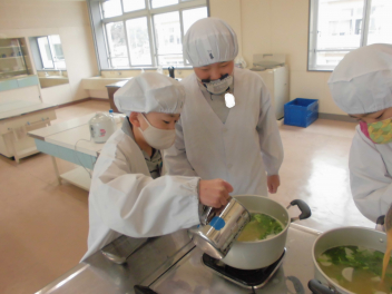 5・6年生がお味噌汁をつくりました