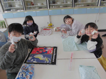 給食のタイミングに合わせ、みんなでおにぎりも。