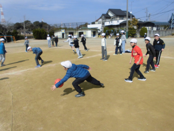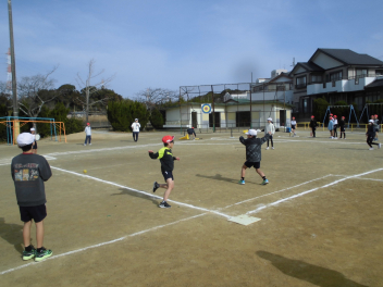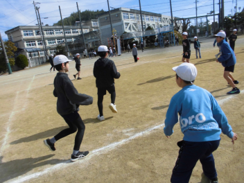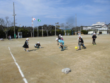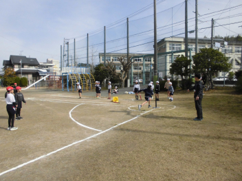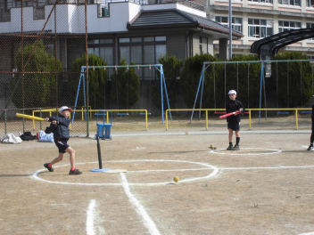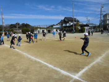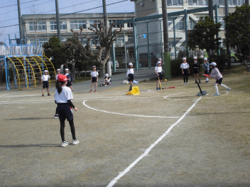 (↓) 4年1・2組;岡田先生&瑞葉先生との授業です。1組対2組でのティーボール交流戦に盛り上がりましたwink