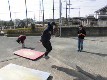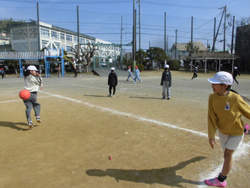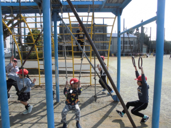 さて、今回のブログは、青空のもと元気に運動場で遊ぶ子らの様子を紹介します。ぽかぽか陽気の16日(月)及び本日18日(水)のことでありまする