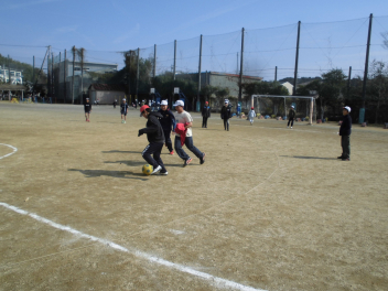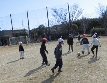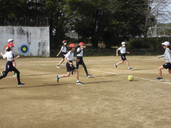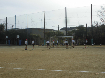 (↓) 「おかえりなさい」の6年3組;明日香先生との授業は、男女に分かれてのLet's soccer