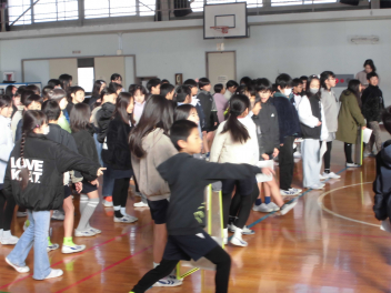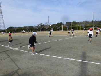 (↓) 2年2組;石田先生との授業です。タグを取られないように、逃げろ~