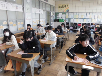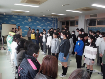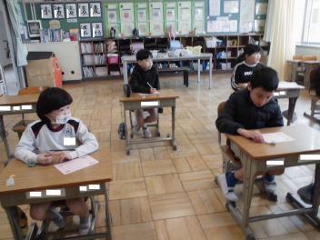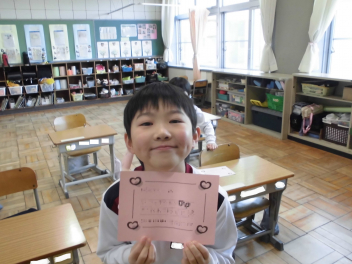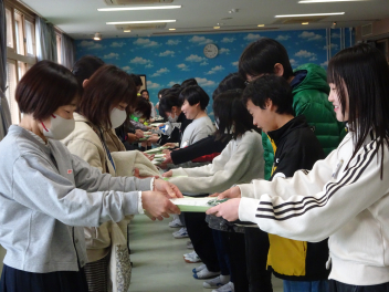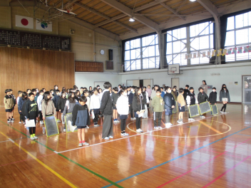 御家族へ、友達へ、教職員へ…と言葉を記してくれました。残り3週間ほどで学級が解散となる今、みんなで「ありがとう」を届け合いたいものです。(文責;校長)