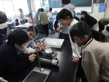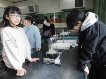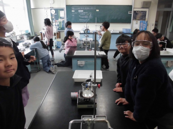 (↓) 4年2組;こちらは瑞葉先生、河辺先生と理科の授業(実験)です。水を温めた際に発生する気体?を集め、その正体に迫りました。