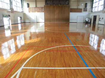 この連休中に体育館の床工事が行われ、それはそれはきれいな状況に