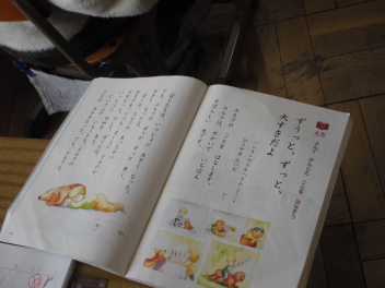(↓) 1年1・2組;梅田先生、弥生先生と国語の授業です。両クラスがともに『ずうっと、ずっと、大好きだよ』という教材文を読み始めるタイミングでした。ぼくとエルフの物語……大好きです