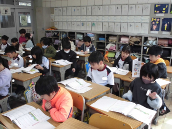 朝の活動は読書タイム。5・6年生については、今年度最後の「読み聞かせ」が行われておりましたlaugh
