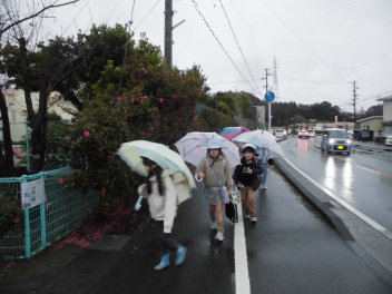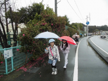 (↓) 登校時は傘、傘、傘