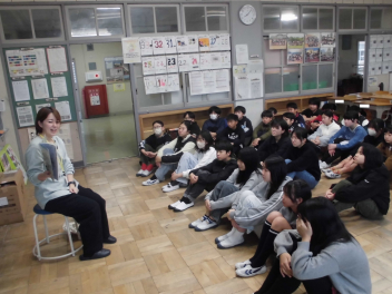 今回のブログは、昨日朝に行われた「心の日」の活動を紹介します。今年度最後は、1年生担任の弥生先生がお話を届けてくれました。