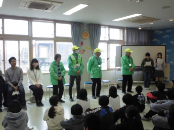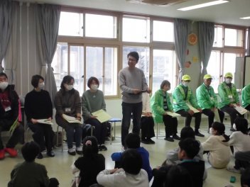 交通安全ボランティア、学習ボランティア、あいさつボランティアの皆さんが集まってくれました。