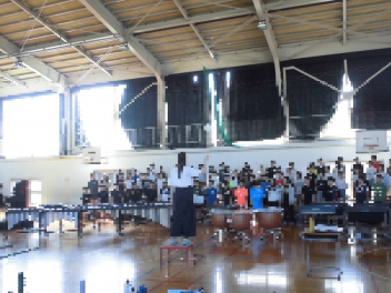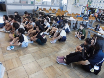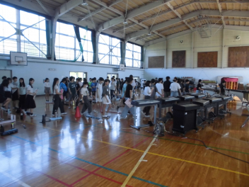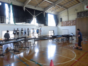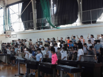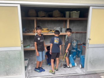 (↓) 外器具庫にて、常時活動に取り組む運動委員たち。どうもありがとう