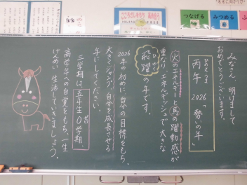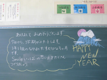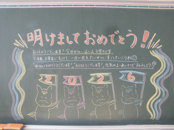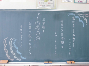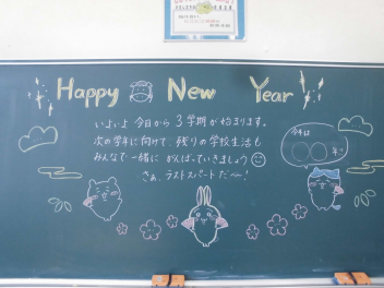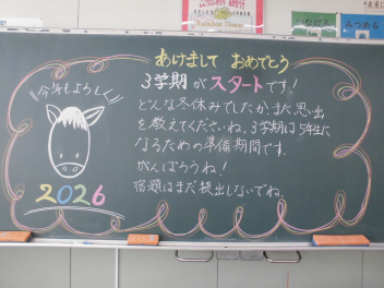 さて、今回のブログは、3学期初日を迎えるにあたり、学級担任が思いを込めて記した「黒板メッセージ」を並べてみました。