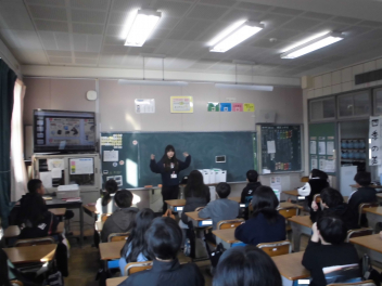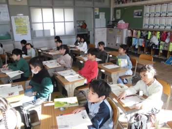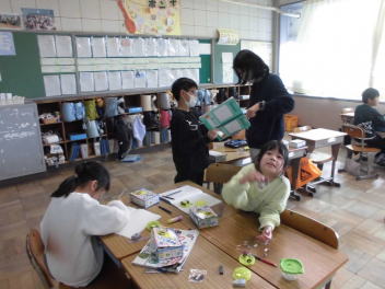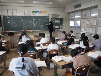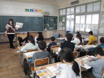 (↓) 4年2組;瑞葉先生との授業。学校内にある教室名を英語で言ったら…