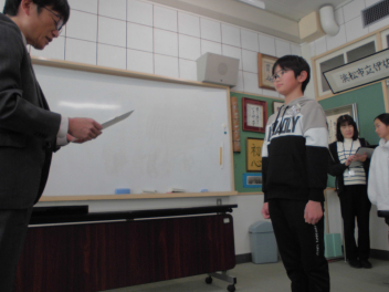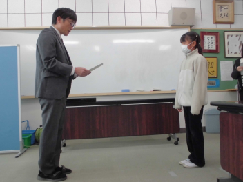 そんな本日の昼休み、会議室では「3学期学級委員任命式」が行われました。以下は様子の一部です。