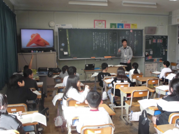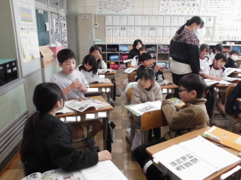 (↓) 4年1組;岡田先生と国語の授業。詩人・まどみちおさんの表現を、子供たちの豊かな発想で読み取っていましたsurprise