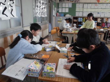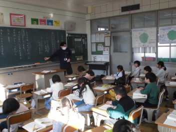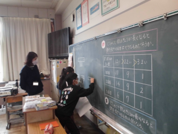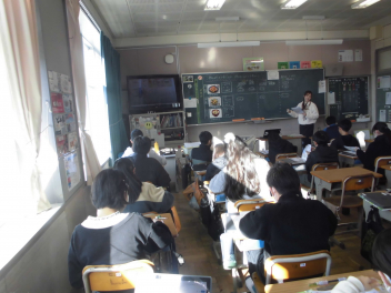 (↓) 6年3組;明日香先生と家庭科の授業。理想的な献立を考えました