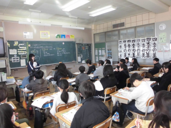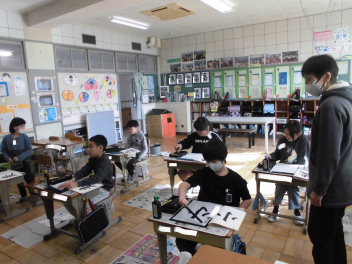 (↓) 若草2組;澤木先生、徳増先生とこちらも書写の授業。各学年の課題文字を毛筆で…indecision