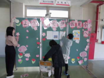 午後は、6年生のみなさんと先生たちとで、明日の入学式の準備です。6年生が、さっそく最高学年としての頑張りを見せてくれました。心を込めて準備をしました。1年生のみなさん、待ってるよ!